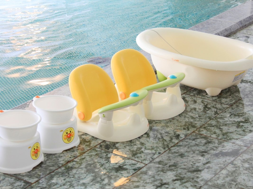 バスチェア・赤ちゃん用全身ソープ・ベビー布団・おむつ専用ゴミ箱・哺乳器・コンセントガードなどのベビーグッズ貸し出しが充実。