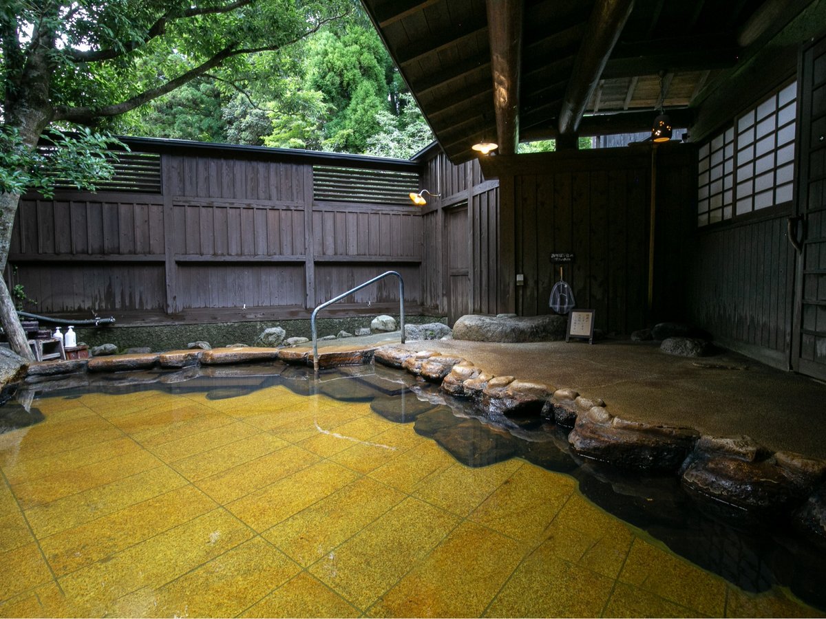 肥後細川藩の御用宿として使われた献上湯の歴史を持つ温泉は、ナトリウム硫酸塩塩化物泉の低張性弱アルカリ性泉で、「赤ちゃんからご年配の方まで幅広い世代の方にお喜びいただいております」と公式サイトに明記されています。